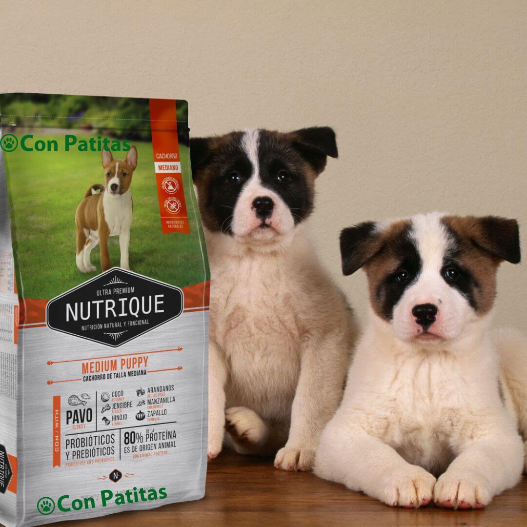 Encuentra Nutrique Medium Puppy al mejor precio en Ecuador en Con Patitas, tu tienda online de confianza especializada en nutrición y bienestar animal. Envíos a todo el país, atención personalizada y productos 100% originales para que tu cachorro crezca sano, fuerte y feliz.